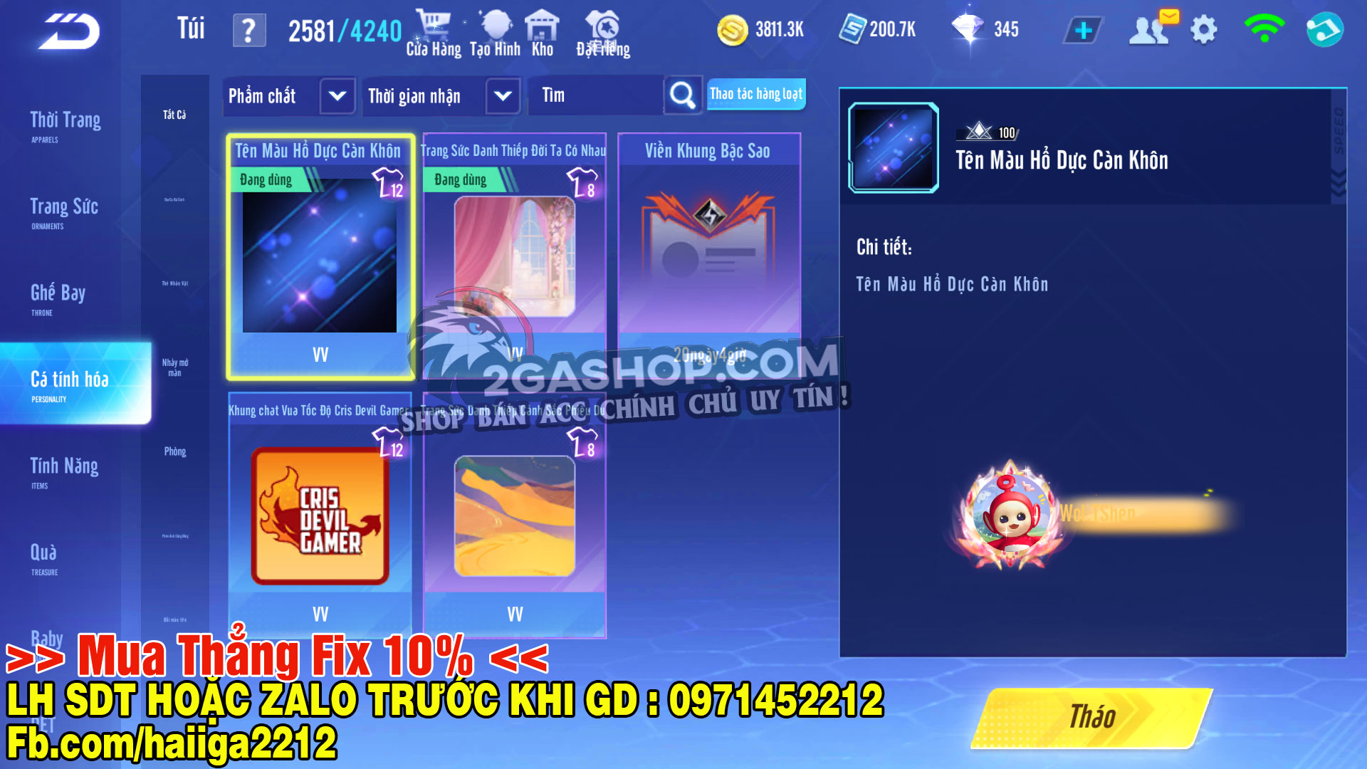 Hình ảnh chi tiết của tài khoản