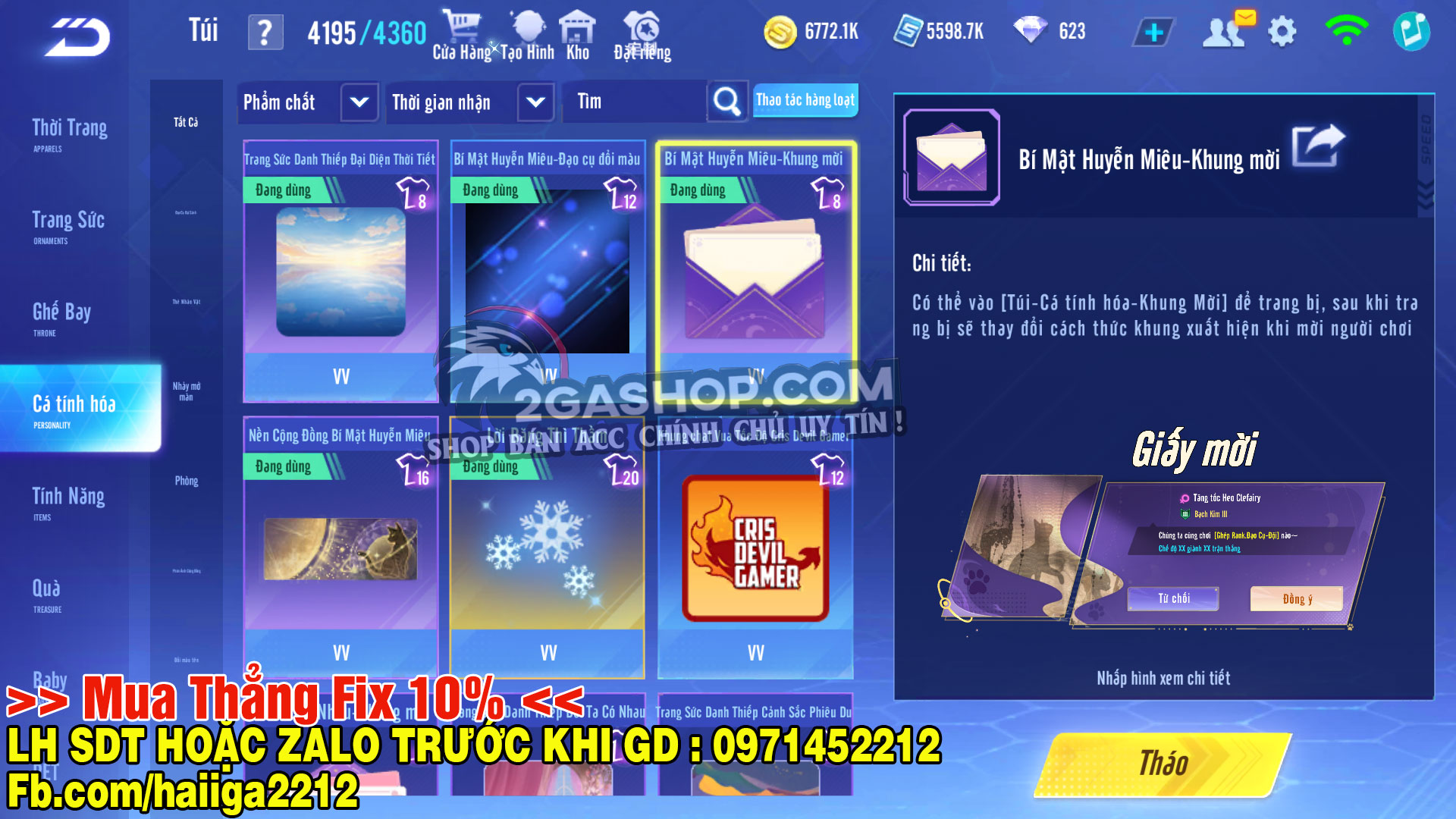 Hình ảnh chi tiết của tài khoản